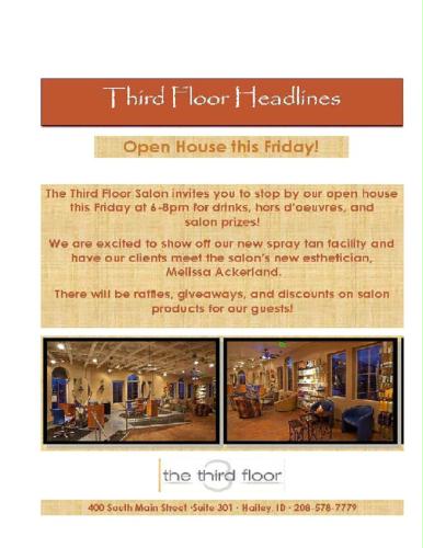 Stop by the Third Floor Salon on Friday the 13 for a fabulous open house!