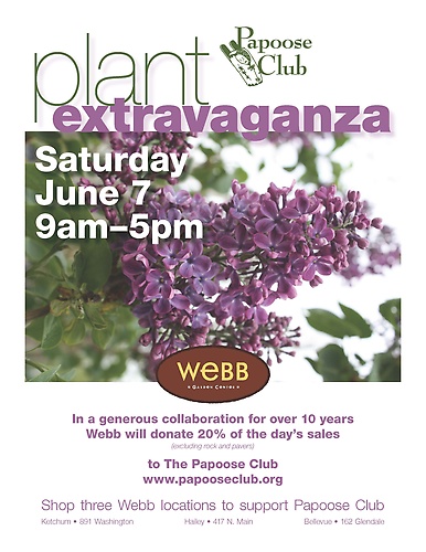 Visit WEBB Garden Centers on Saturday, June 7 from 9:00am to 5:00pm for Papoose Club’s annual Plant Extravaganza! This is the perfect time to stock up on all your gardening needs for the new growing season and benefit the kids of the Wood River Valley at the same time!