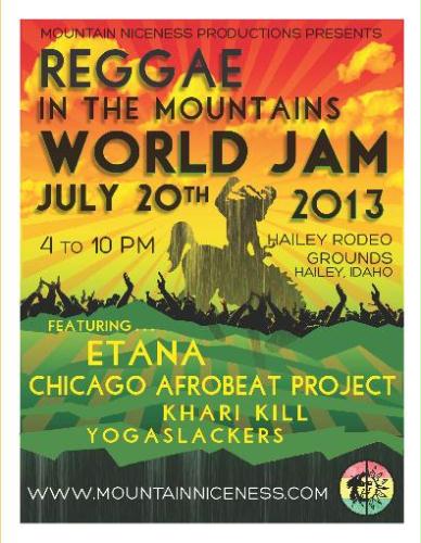 Mountain Niceness Productions presents Reggae in the Mountains with a World Jam music event this summer at the Hailey Rodeo Grounds in Hailey, Idaho Saturday, July 20, from 4-10 p.m.